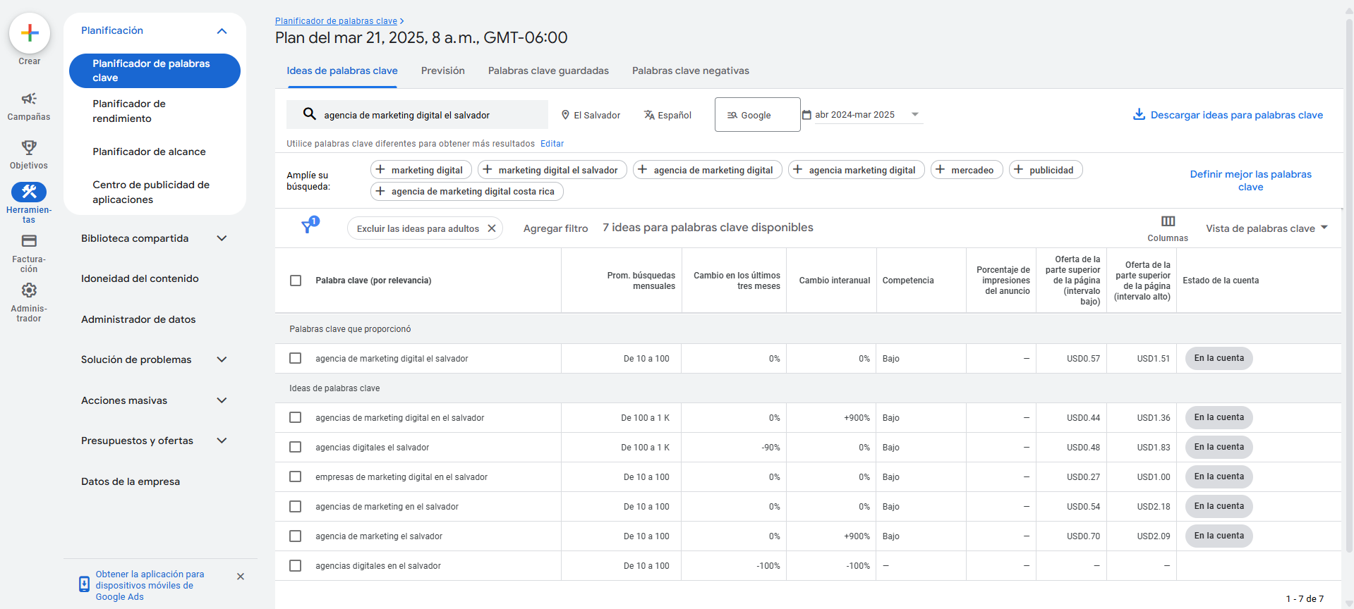 Nuestro éxito se refleja en nuestra posición como uno de los primeros resultados orgánicos con las palabras clave "Agencia de Marketing Digital El Salvador", "Diseño web en El Salvador" o "Pauta en redes sociales El Salvador"